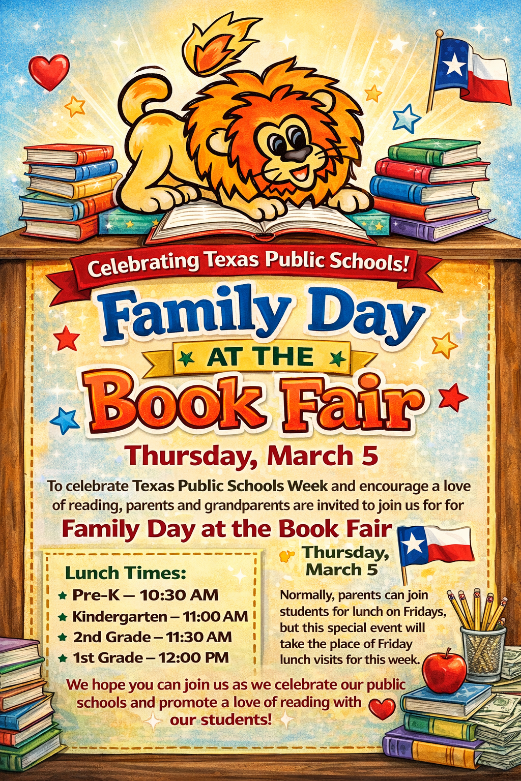 A fierce lion with sharp claws stands over a red outline of the state of Texas, with a black star in the corner.